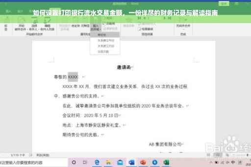 随着财务管理日益复杂化,银行流水交易金额的打印与解读已成为重要的财务活动之一,本文将详细介绍如何打印银行流水,并提供一份详尽的解读指南,帮助读者深入了解自己的财务状况。