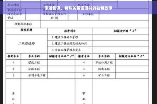 摘要:,,表姐和表妹之间拥有深厚的情谊,这是一份特殊的证明书——表姐关系证明。这份证明不仅记录了她们的亲情纽带,更见证了她们共同成长、相互扶持的历程。无论是喜悦还是挫折,她们始终彼此相伴,共同度过人生的每一个重要时刻。这份证明书闪耀着她们之间真挚的情感,是她们永恒的回忆和宝贵的财富。