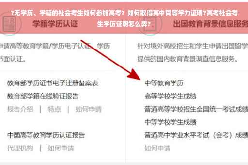 1.参加高中学业水平测试考试,获得合格证,作为高中同等学历证明。然后报名高考(以社会考生身份)。除了是身份不同没有学籍以外,其他和普通考生没有不同。 注意,(社会考生参加高考 )和 (成人高考 )是两种形式。
