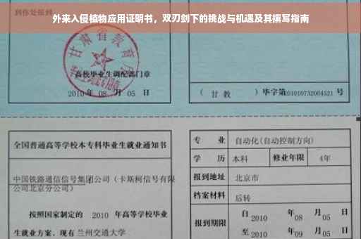 随着全球化的步伐不断加快,外来入侵植物逐渐成为我国生态环境的重要组成部分,这些植物通过自然传播或人为引种进入我国境内,在适宜的环境条件下迅速扩散,对本地生物多样性和生态系统产生了显著的影响,为了加强对外来入侵植物的管理和应用,本文将从多个角度深入探讨外来入侵植物应用证明书的重要性,以及其在实践操作中的应用。