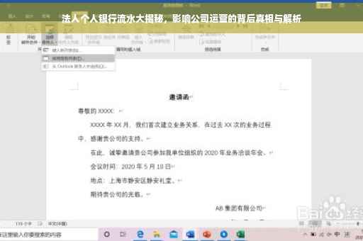 作为企业的法人代表,与银行的关系密切是不可避免的,企业日常运营、扩张、投资等都需要通过银行进行资金往来,法人个人的银行流水账单往往反映了企业的运营状况和资金流动情况。