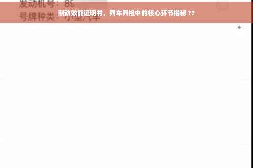 随着铁路行业的飞速发展,列车运行速度不断提高,对制动系统的要求也越来越高,制动系统是列车安全运行的核心组成部分,其效能直接关系到列车行驶的安全与稳定,制动效能证明书是铁路列检部门对列车制动系统进行全面检查、试验和评估后出具的证明文件,旨在确保列车制动系统的工作效能符合相关规定及标准。
