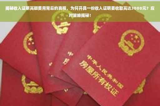 收入证明在当代社会愈发显得重要,广泛应用于贷款、信用卡办理、租房和求职等多个领域,办理收入证明时的高额费用问题让许多人头疼不已,本文将深入探究收入证明费用的背后原因,揭示为何一份收入证明竟要收取高达3000元的费用,同时提供解决方案和建议。