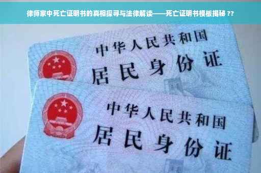 一则关于律师家中死亡证明书的新闻引起了社会各界的广泛关注,据悉,某知名律师在家中不幸离世,一份死亡证明书引发了人们对背后真相的猜测和热议,本文将围绕这一事件展开调查,带您探寻背后的真相,同时从法律角度进行解读。