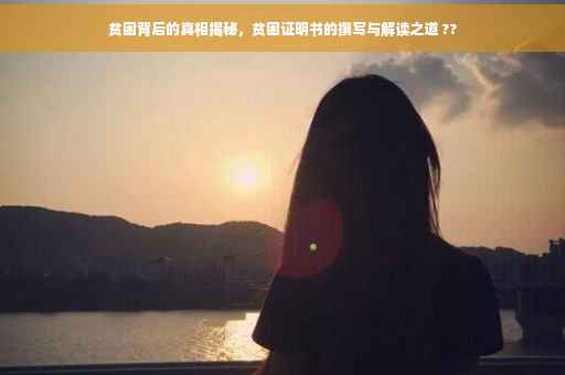 摘要:,,本文将揭示贫困背后的真相,通过讲述一份经济收入贫困证明书的故事,让读者了解贫困的真实原因。文章将介绍如何撰写经济收入贫困证明书,包括关键信息的呈现和注意事项。通过深入了解贫困证明书的撰写过程,帮助人们更全面地认识贫困问题,以期激发社会各界对贫困问题的关注和行动。