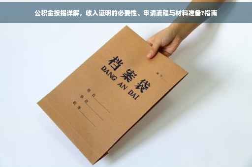 申请公积金按揭贷款时,收入证明是必不可少的材料,本文详细介绍了公积金按揭贷款的申请流程与必备材料,希望能帮助购房者更好地了解公积金按揭贷款的相关知识,顺利办理贷款,实现购房梦想。
