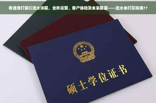 摘要:香港渣打银行流水详解,涵盖业务运营和客户体验等方面。客户可通过银行渠道打印流水单。展望未来,该行将继续优化服务,提升客户体验,并寻求更多发展机遇。该银行致力于为客户提供高效、便捷的金融服务,满足客户需求,实现持续发展。