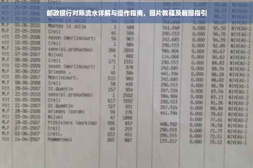 摘要:本文将详细介绍邮政银行的对账流水图片,包括其特点和功能。同时提供操作指南,帮助用户了解如何正确进行邮政银行对账流水图片的截图。通过本文,您将了解到如何轻松查看和管理您的银行流水,确保财务安全。