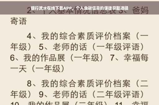 通过在线下载银行流水,我们可以更便捷、高效地获取个人金融信息,随着数字化金融的不断发展,我们相信未来会有更多便捷、安全的金融服务方式出现,为我们的生活带来更多便利,在享受这些服务的同时,我们也要不断提高金融安全意识,确保个人金融信息的安全。
