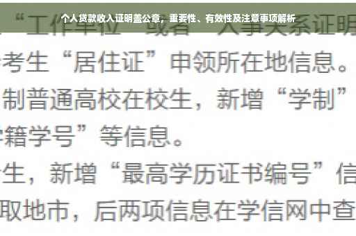 在当今社会,随着经济的发展和个人财务需求的增长,越来越多的人选择申请个人贷款,在申请贷款过程中,收入证明是评估个人信用和还款能力的重要依据,本文将详细介绍个人贷款收入证明盖公章的重要性以及注意事项,帮助读者更好地了解相关流程。