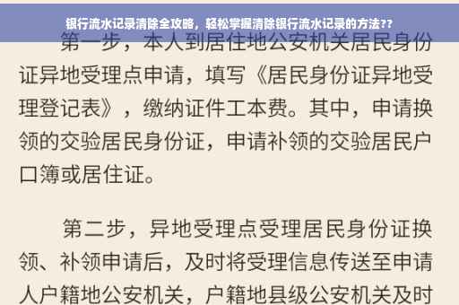 4. 了解银行政策:不同银行对于流水记录清除的规定可能有所不同,因此请提前了解所在银行的政策。