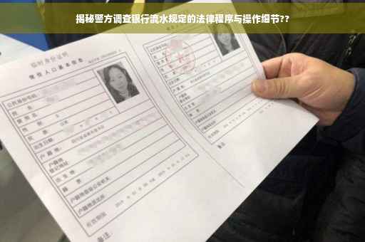 随着金融行业的迅速发展,银行流水作为个人和企业经济活动的重要记录,逐渐受到社会各界的广泛关注,在特定情境下,例如涉及违法犯罪调查时,警方可能需要调取银行流水作为证据,警方在调查过程中对于银行流水的规定是怎样的呢?本文将对此进行详细介绍。