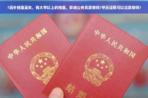 高中档案丢失,有大学以上的档案。是会影响公务员政审的。现在不单是公务员,征兵都是要高中档案的。档案归根到底是对过去经历和家庭背景最全面的记录一份文件,如果真的是个人档案丢失,那就尽快补办高中学籍档案,补办好后归档到你现有的档案中就不受影响了。