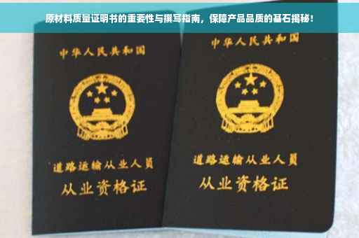 随着工业化和现代化的不断推进,原材料的质量成为了制造业中至关重要的因素,在这个竞争激烈的市场环境下,企业要想保持产品的品质与竞争力,必须从源头抓起,确保原材料的质量,而原材料的质量证明书正是保障产品品质的基石,它对于生产企业、消费者以及整个产业链的发展都具有重要意义。