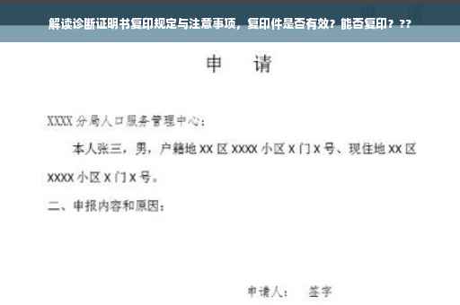 诊断证明书是记录患者诊断结果和治疗方案的重要医疗文件,在日常的生活和工作中,有时可能需要提供诊断证明书的复印件,如申请休假、办理保险理赔等,诊断证明书是否可以复印呢?复印时需要注意哪些问题?本文将为您详细解读相关规定,并提示注意事项。