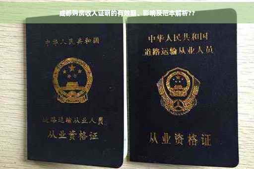 摘要:本文将探讨成都购房收入证明的有效期及其影响。文章介绍了购房收入证明的重要性,分析了证明的有效期限,并深入解析了不同有效期对购房者的影响。本文还提供了成都购房收入证明范本,以帮助购房者更好地理解和准备相关文件。文章旨在帮助购房者了解购房收入证明的相关事项,以便顺利完成购房流程。
