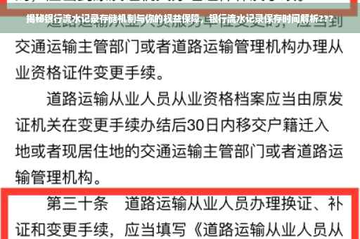 在现代社会,随着金融行业的快速发展,银行流水作为个人和企业经济活动的记录,其重要性日益凸显,越来越多的人开始关心自己的银行流水记录能够保持多久,这不仅关乎个人财产安全,也涉及个人隐私保护,本文将详细介绍银行流水的存储机制、时间跨度以及相关的权益保障问题,帮助大家更好地了解这一主题。
