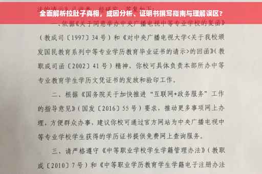 摘要:本文将全面分析吃东西拉肚子的真相,探讨其原因和解决方法。还将介绍拉肚子证明书的写法,帮助读者了解如何正确书写拉肚子相关证明。通过阅读本文,您将更好地了解如何应对拉肚子问题,并学会如何正确表述自己的病情,以便获得有效的治疗和证明。