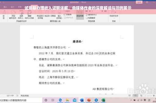试用期是员工与企业相互了解、协商磨合的阶段,在此阶段,员工需要充分展示自己的能力,而企业则需要评估员工是否适合岗位,收入证明则是用来证明个人在某段时间内所获得的收入情况,通常用于办理贷款、信用卡、租房等事务。