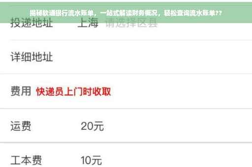 软通银行的流水账单作为个人财务记录的重要部分,具有个人理财、贷款申请等多种作用,客户可以通过网上银行、手机银行或柜台查询等方式获取流水账单,并需注意保密性、真实性和完整性等事项,希望本文能够帮助读者更好地了解软通银行流水账单,实现财务自由。