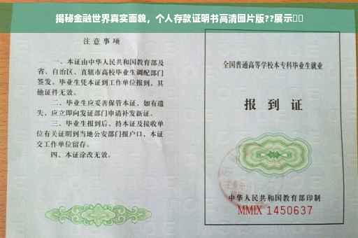 摘要:本文将呈现个人存款证明书的高清图片,深入揭示金融世界的真实面貌。通过这份证明书,我们可以一窥个人在金融领域内的存款状况,了解金融生活的实际运作。文章旨在提供清晰、直观的个人存款证明图片,帮助读者更好地理解金融知识,同时保障个人财产安全。