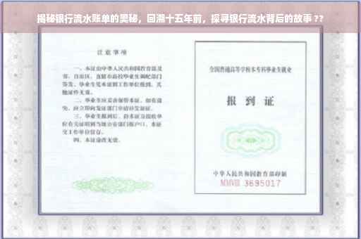 摘要:本文将揭示银行流水账单背后的故事,探寻其奥秘。从XXXX年前开始,我们将深入了解银行流水账单的发展历程及其重要性。本文将重点关注银行流水账单中的细节,让读者了解如何通过银行流水账单洞悉个人财务状况。特别是本文将深入探讨15年前的银行流水账单,揭示其背后的故事和重要性。通过本文的阅读,读者可以更好地理解银行流水账单的作用,以及如何从中获取有价值的信息。