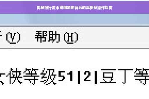 为确保银行流水明细的安全性,银行普遍采用加密技术对流水明细进行加密处理,通过加密技术,可以有效防止信息泄露和非法获取,加密技术的同时也给用户带来了一定的不便,如用户在查询、解压流水明细时,需要掌握相应的解密方法和技巧。