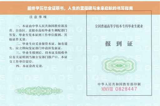 最终学历毕业证明书,是我们多年学习生涯的结晶,它代表着我们在某一教育阶段学习的结束,以及对应知识和能力的获得,这张证书不仅记录了我们完成学业的经历,更体现了我们的毅力、决心和付出,它是我们向人生下一个阶段迈进的通行证,也是我们未来职业发展的敲门砖。