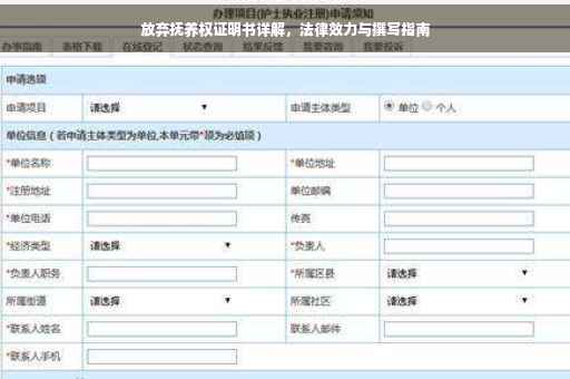在当今社会,家庭关系日趋复杂多变,涉及抚养权的问题愈发引人关注,在某些特殊情况下,父母可能需要放弃自己的抚养权,放弃抚养权证明书作为法律文件,其法律效力及书写规范至关重要,本文将详细介绍放弃抚养权证明书的内容、法律效力及注意事项,以便帮助大众更好地了解这一法律文件。