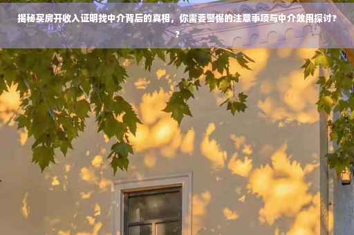 随着房地产市场的繁荣,购房已成为人们生活中的重要事件,在购房过程中,收入证明是不可或缺的一环,一些购房者因工作繁忙或其他原因选择通过中介开具收入证明,然而这其中隐藏着许多细节和风险,本文将深入探讨买房开收入证明找中介的背后真相,帮助购房者了解其中的利弊,从而做出明智的决策。