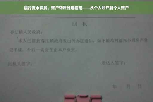 以张先生为例,他通过网上银行将储蓄账户资金转入投资账户购买理财产品,完成转账后,张先生及时核对银行流水,并按时间顺序整理保存,他定期查看银行流水,了解财务状况和投资收益,这表明张先生正确处理了银行流水,通过明确转账目的、选择安全方式、及时核对、分类整理等方法,有效管理个人财务。
