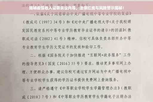 摘要:本文揭露了单位开虚假收入证明诉讼的内幕,并强调了法律红线的不可触碰性。文章指出,虚假收入证明不仅违法,而且可能导致严重的法律后果。本文将介绍如何撰写相关诉讼文件,提醒读者要遵守法律法规,避免陷入法律风险。
