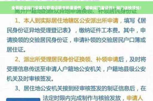 了解哪些阀门需要管道证明书以及管道证明书的重要性,对于保障管道系统的安全性和提高工作效率至关重要,在选择和安装阀门时,应严格遵守相关法规和标准,确保获得管道证明书,希望本文能帮助读者更好地了解阀门安装与管道证明书的相关知识。