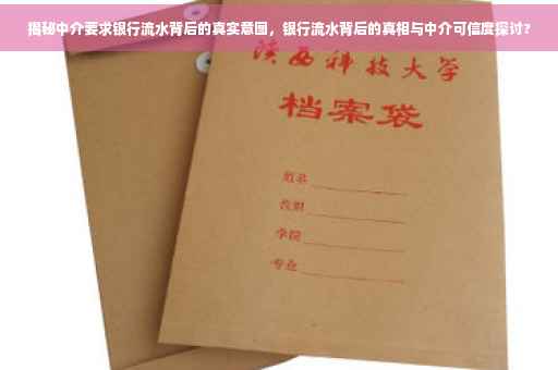 摘要:中介要求银行流水是常见的操作,其背后意图是核实个人或企业的财务状况和收入状况。中介要求流水的可信度需视具体情况而定。本文探讨了中介要求银行流水的真实意图,并提醒公众在提供流水信息时要谨慎,以免泄露个人隐私或遭遇诈骗风险。也提醒中介要遵守职业道德和法律法规,不得滥用客户信息进行非法活动。