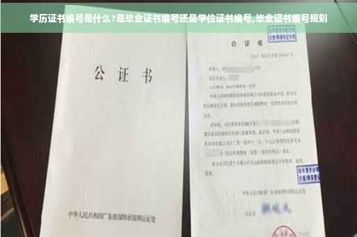 毕(结)业证书编号即为注册号,使用阿拉伯数字,统一规范为18位。(一)普通、成人高等教育毕(结)业证书注册号由学校或其他教育机构按以下顺序编排:前5位为学校或其他教育机构的国标代码;第6位为办学类型代码;第7至10位为年份;第11至12位为培养层次代码;第13位至17位为学校对毕(结)业证书编排的序号。2002年学历证书编号扩充至18位(但当年有部分高校仍使用17位)。(二)高等教育自学考试及高等教育学历文凭考试毕业证书注册号,由各省(自治区、直辖市)高等教育自学考试委员会按以下顺序编排:第1位为办学类型代码;第2位为培养层次代码;第3、4位为省(自治区、直辖市)国标代码;第5、6位为地(市)国标代码;第7、8位为县(区)国标代码;第9、10位为年度代码;第11位为上、下半年考试考次代码;第12至16位为准考证序号代码;第17位为校验代码。(三)办学类型代码:普通高等教育1;成人高等教育5;高等教育自学考试和高等教育学历文凭考试6;网络教育为7。(四)培养层次代码:博士研究生01;硕士研究生02;第二学士学位04;本科05;专科(含高职)06。