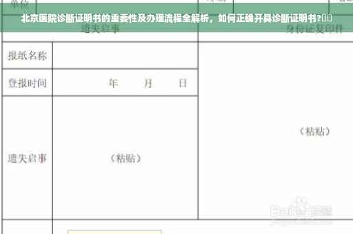 北京医院诊断证明书在日常工作和生活中占据重要地位,本文全面介绍了其重要性、办理流程、注意事项以及常见问题解答,希望这篇文章能帮助大家更好地了解和运用诊断证明书,保障个人权益,随着医疗行业的不断发展,我们也需要关注各类医疗证明的作用和办理方式,以便在需要时能够顺利办理。 (共计XXX字)【根据您的实际字数需求填写】希望对您了解北京医院诊断证明书有所帮助和启发。