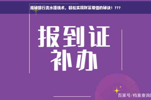银行流水不仅是财务记录,更是实现财富增值的利器,通过掌握银行流水赚钱的奥秘,轻松实现财富梦想,希望本文能为您的财富增值之路提供帮助,祝您成功!