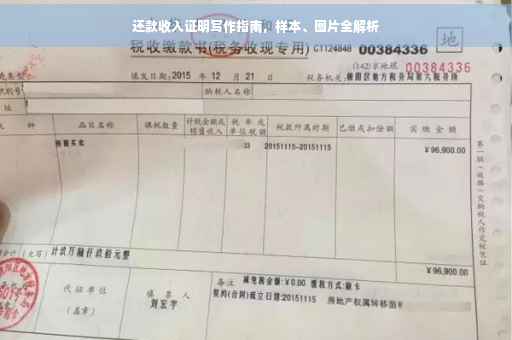 摘要:本篇文章提供还款收入证明的写作样本,旨在为读者提供详尽的指导。内容包括样本文字描述和可能的图片格式参考。通过本文,读者可以了解如何正确地撰写还款收入证明,以确保信息的准确性和清晰性。样本不仅包含文字表述,还有图片格式供参考,方便读者快速掌握写作要点。