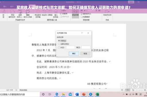 摘要:本文将详细介绍买房收入证明的格式与范文,帮助读者了解如何撰写一份有效的收入证明以支持购房申请。文章将涵盖收入证明的基本格式要求,包括公司名称、部门、职位和收入等关键信息的正确呈现方式,同时提供实用的范文供读者参考。通过阅读本文,读者可以了解如何规范撰写买房收入证明,以便顺利办理购房手续。