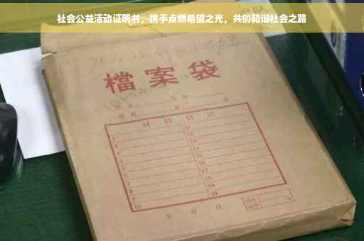 摘要:社会公益活动证明书是记录个人或团体参与社会公益活动的证明文件,旨在弘扬社会正能量,推动社会和谐发展。本证明书内容应简洁明了,重点阐述活动目的、时间、地点、参与人员及活动内容,以证明相关人员在公益活动中的表现。通过参与社会公益活动,点燃希望之光,共同为创建和谐社会贡献力量。