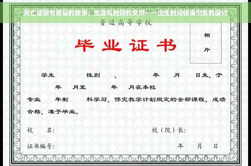 摘要:本文将探讨死亡证明书背后的故事,揭示其中关于生命与时间的交织。文章将聚焦于一个关于死亡证明书中出生时间错误的问题,探讨这种错误对个人和家庭可能产生的影响。通过深入了解这一话题,我们将进一步认识到生命的脆弱和时间的无情,以及一份看似简单的文件背后所蕴含的重大意义。