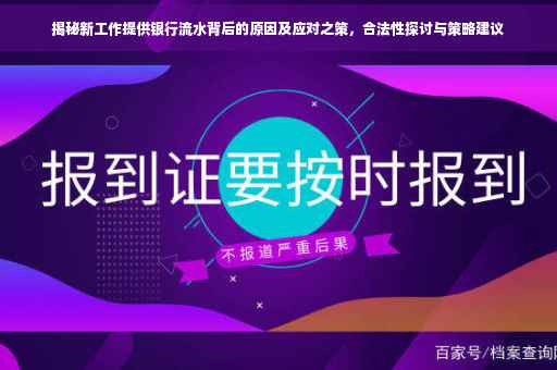摘要:新工作提供银行流水引起了广泛关注。背后的原因可能与雇主核实员工收入有关。是否合法需视具体情况而定。应对之策包括谨慎对待个人信息泄露风险,了解相关法律法规,以及保护个人隐私。在提供银行流水时,务必确保合法合规,避免不必要的法律风险。