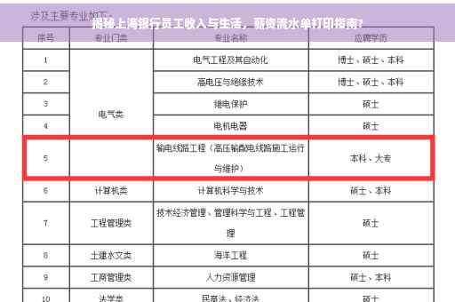 摘要:本文将介绍上海银行薪资流水单的打印方法,并探讨银行员工的收入与生活。通过了解薪资流水单,可以揭示银行员工的收入水平和生活状态,为读者提供关于银行行业的薪资和生活状态的参考。摘要字数控制在100-200字之间。