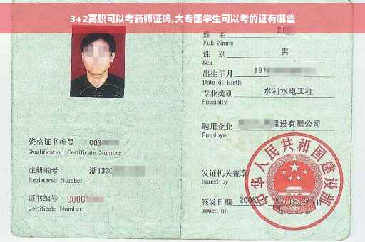 3+2高职可以考药师证。因为3+2高职是我国普通全日制中等职业教育技术高中开办的非全日制成人高考大专班,虽然3+2高职最后拿到的高职毕业证不是全日制高职毕业证,但是成人大专毕业证也是国家认可的一种大专文凭,所以是可以考药师证的