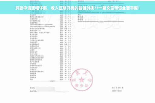 摘要:本文介绍了贷款申请流程中关于开具收入证明的时间点。文章详细阐述了在贷款前多久开具收入证明合适,帮助读者全面了解贷款申请过程中的注意事项。文章内容丰富,指导性强,有助于申请者顺利提交贷款申请。