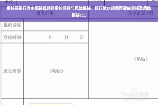 风险:买银行流水搞笑视频也存在一定的风险,这类视频可能误导观众对银行业务的认知,由于表演成分居多,部分观众可能将虚构情节与现实混淆,导致在实际办理业务时出现误解或错误操作,更重要的是,购买银行流水本身可能涉及违法行为,在一些视频中,可能存在鼓励或诱导观众通过非法途径购买银行流水的情况,这不仅违反了金融行业的规定,还可能涉及法律风险。