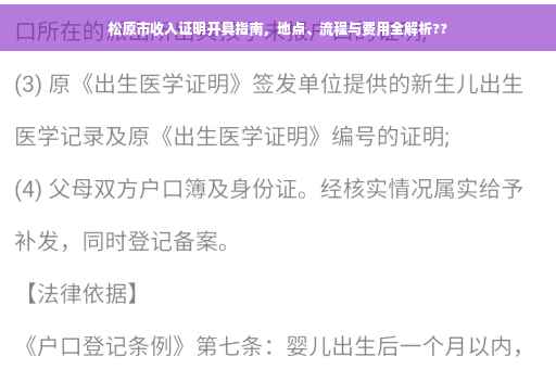 松原市收入证明的开具地点和流程可能因各种因素而有所差异,本文旨在为您提供一个大致的指南,帮助您了解松原市收入证明的开具地点及流程,希望您在办理贷款、信用卡等金融业务时能够顺利完成收入证明的开具,如果您在办理过程中遇到任何问题,建议及时咨询相关部门或机构,以获得更准确的指导。