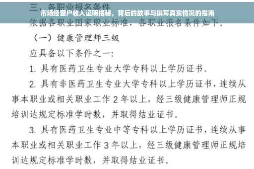 摘要:市场经营户收入证明是展示经营成果的重要文件,揭示背后的故事和真实情况是撰写时的关键。撰写收入证明时,应包含经营者的基本信息、经营项目的具体情况、经营时间、收入状况等核心内容。要真实反映经营户的实际情况,避免夸大或虚构内容。正确书写市场经营户收入证明有助于了解经营者的经济状况和市场运营状况。