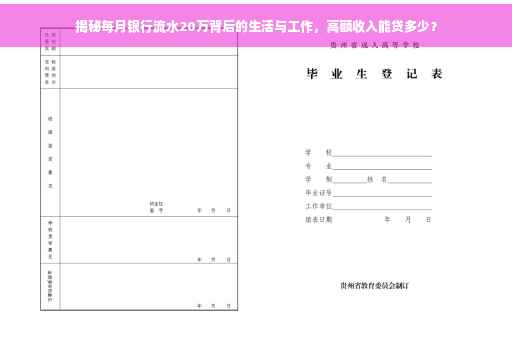 对于拥有每月银行流水20万的人来说,职业发展与挑战同样重要,他们需要不断提升自己的专业技能和知识水平,紧跟市场步伐,他们还需要关注行业动态和竞争对手的情况,制定合理的发展策略,拓展人脉资源,为未来的职业发展创造更多机会也是必不可少的。