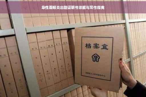 摘要:,,本文介绍了急性面颊炎出院证明书的详细写法。出院证明书是患者康复后的重要文件,需要准确记录患者的病情、治疗过程和出院情况。本文详细阐述了出院证明书中应包含的内容,如患者基本信息、诊断结果、治疗方案、恢复情况、医嘱建议等。本文还提供了简洁明了的格式和注意事项,帮助患者和医生更好地完成出院证明书的撰写。急性面颊炎的出院证明书应突出病情特点和治疗成效,为患者后续的康复提供有力支持。